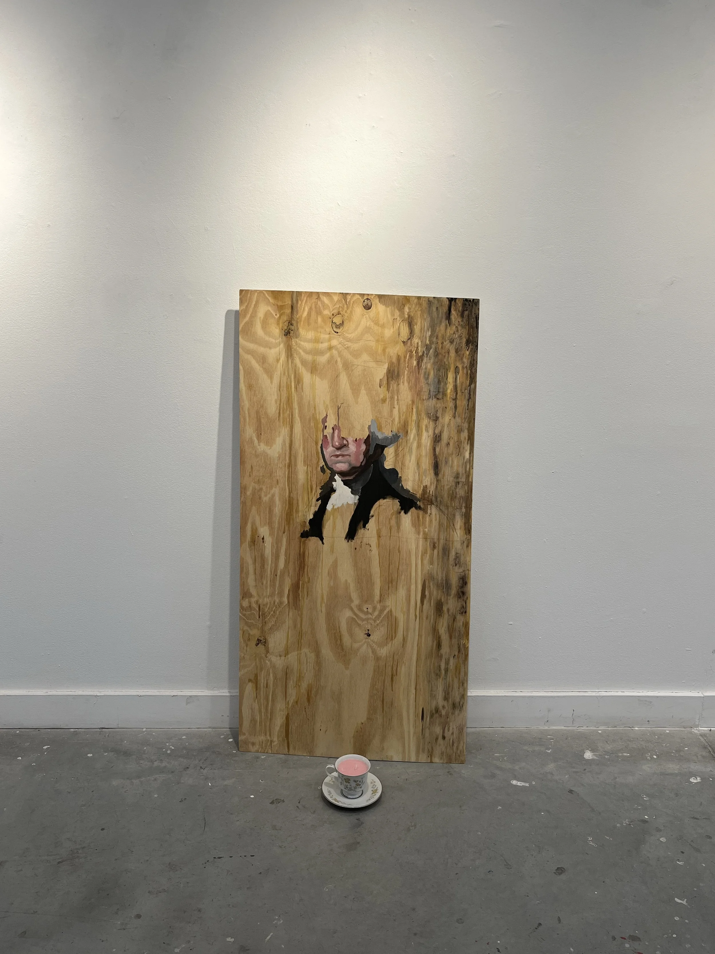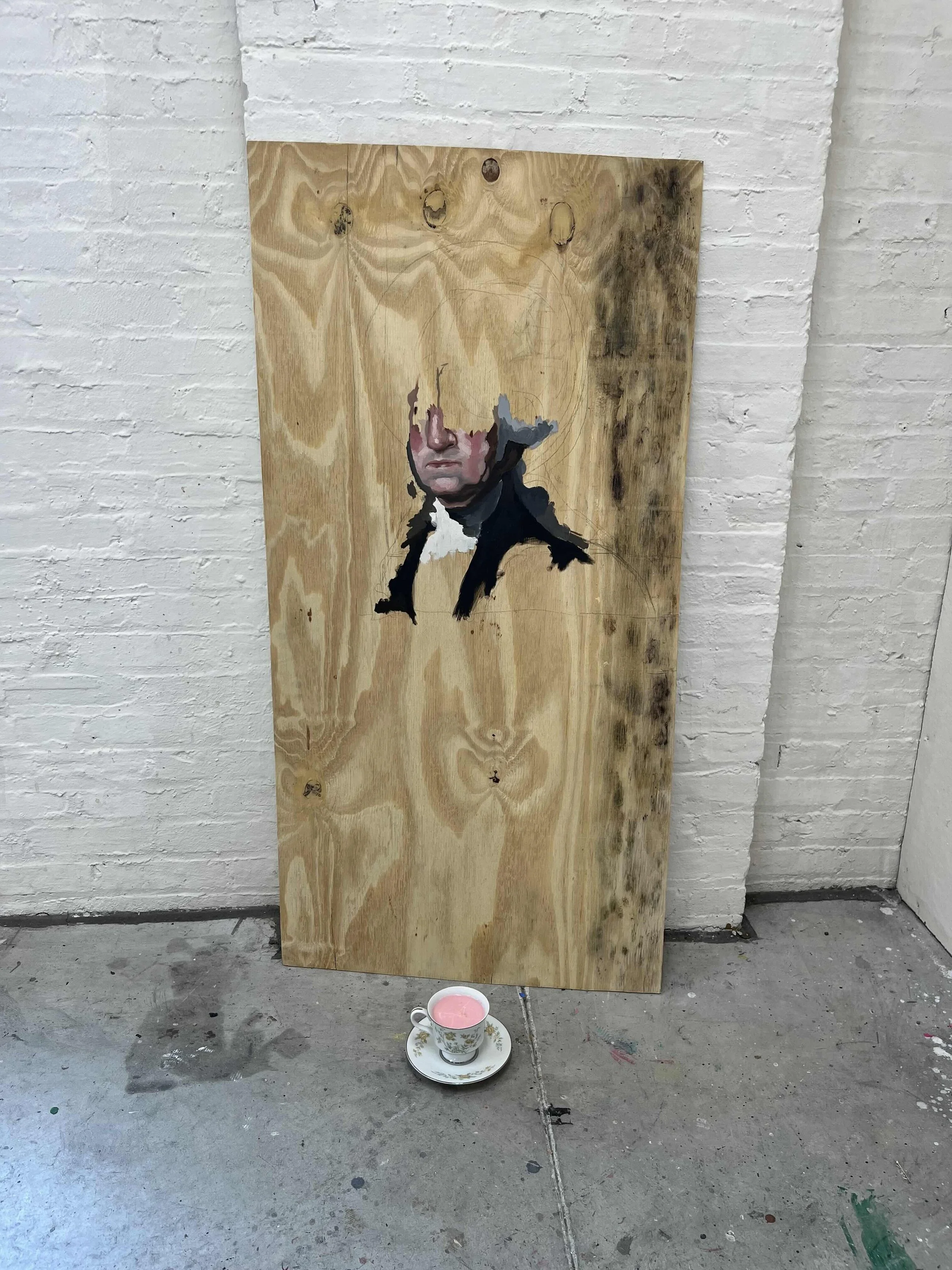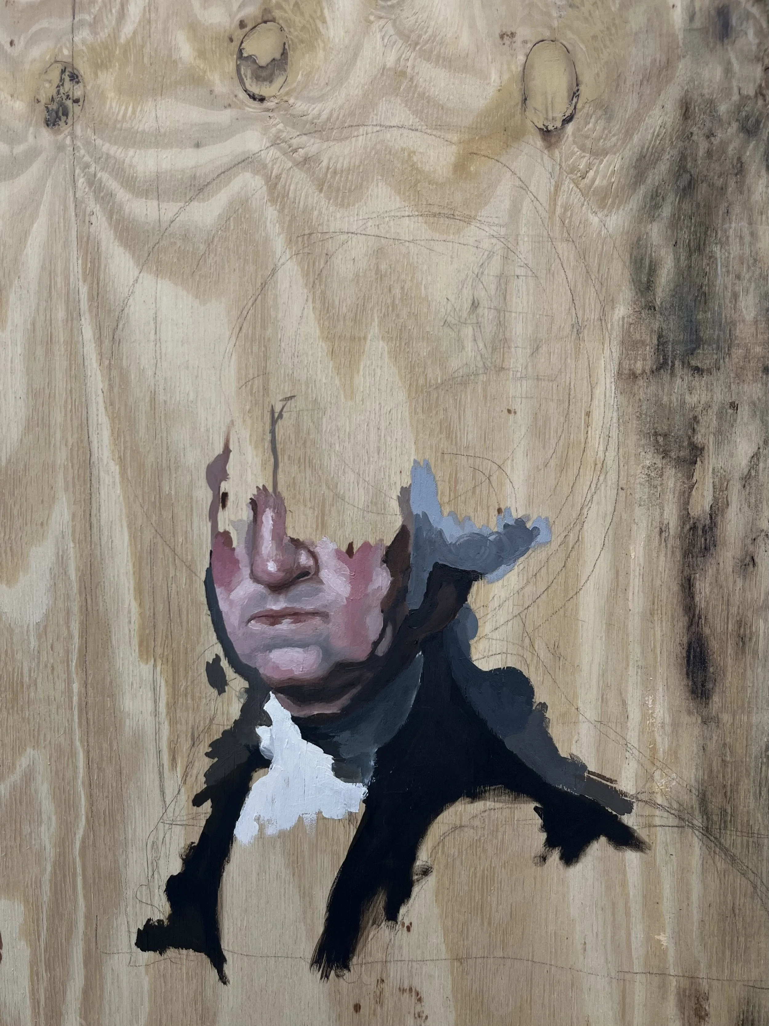 Athenaeum Portrait (The Lye They Tell) explores the commodification of the image of George Washington, his escape from the mold, and the continued degradation of his image. It recreates a Gilbert Stuart study of Washington, one which would go on to become the basis for the engraving of Washington’s portrait on the dollar bill. It aims to tackle the ugly truths of George Washington, ones that lie just beyond the surface.